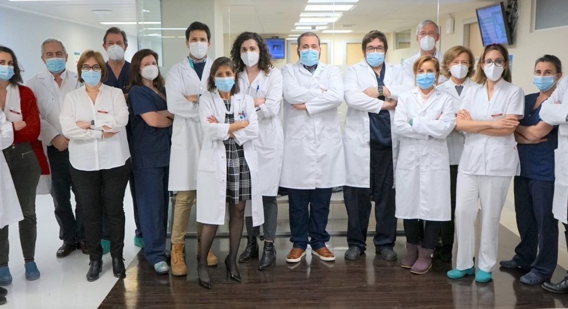Foto: Equipo de Oftalmología. De izquierda a derecha: Almudena del Hierro, María Mejías, José María Cisnal, Emilia Tajada, Antonio Zanca, Susana Sanz, Carlos Narváez, Belkis Angomas, María Nieves, Simón Quijada, Juan Donate, Iulia Pana, Javier García, Consuelo López, Mª José Rodríguez, Cristina Bonilla y Ángel Romo