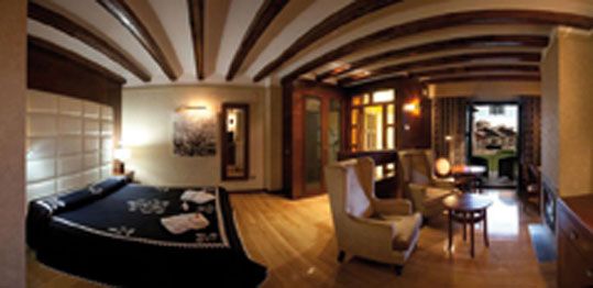 Tanto en las villas como en el hotel reina el silencio y la tranquilidad que requiere una escapada romántica. El hotel dispone de diferentes tipos de habitaciones, desde las abuhardilladas hasta suite imperial, pasando por junior suite; todas ellas con chimenea.