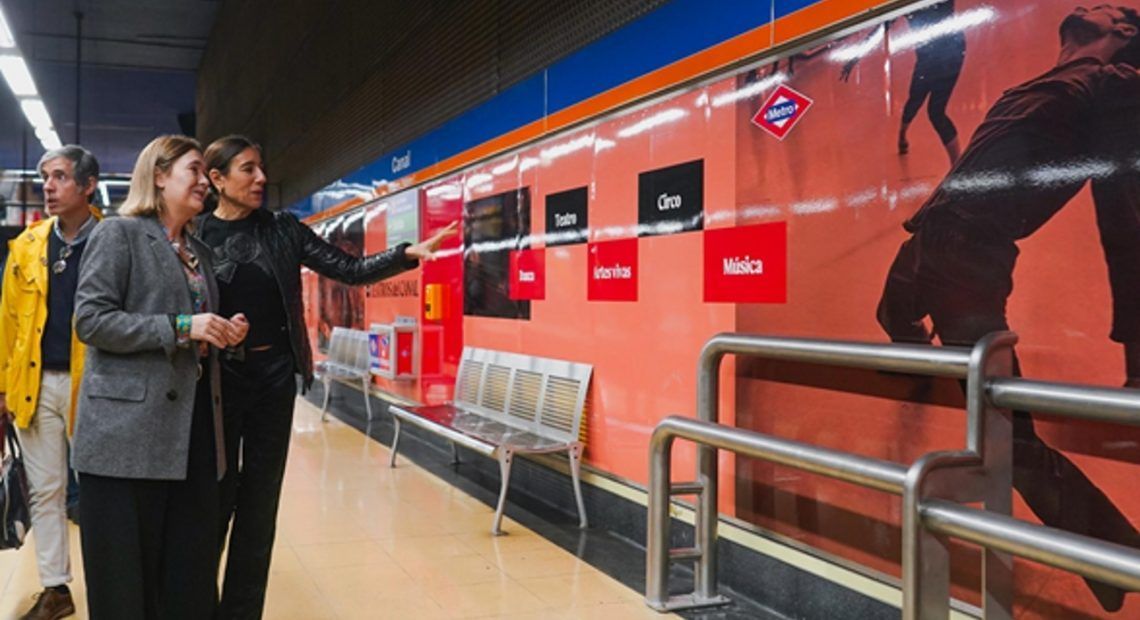 La Comunidad de Madrid ha presentado la tematización de la estación de Metro de Canal (L2 y L7), que convierte a sus pasillos, andenes y espacios en la antesala de los Teatros del Canal para rendir tributo a las artes escénicas. La consejera de Cultura, Turismo y Deporte del Ejecutivo regional, Marta Rivera de la Cruz, ha inaugurado los vinilos impresos que se han instalado en cerca de 1.000 metros cuadrados del suburbano en este emplazamiento.
