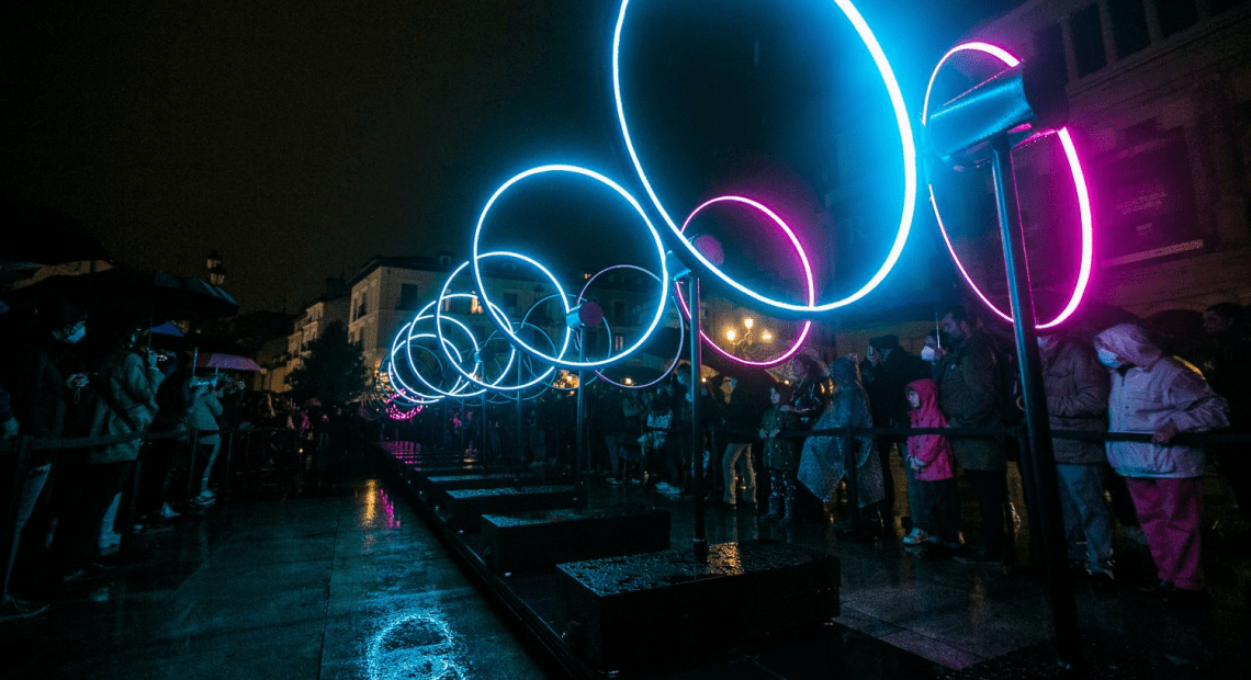 Así sucedió la pasada Navidad cuando la instalación de luz y sonido Evanescent creó un espectáculo dinámico de coreografía con luz natural y artificial, explorando el concepto de lo efímero. La instalación de Atelier Sisu, estudio de arte con sede en Sydney (Australia), dirigido por el escultor y diseñador industrial Renzo B. Larriviere y la arquitecta y artista Zara Pasfield, que se ubicó en la plaza de la Armería, fue todo un éxito, consiguiendo un flujo de visitas continuas a lo largo de todos los días de exhibición tanto en horario diurno como al caer la noche.
