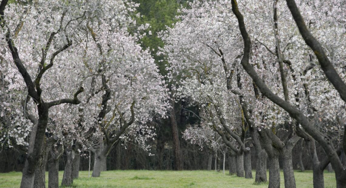 Con la llegada de la primavera, la Quinta de los Molinos se transforma en un manto de flores blancas y rosadas gracias a la espectacular floración de sus casi 1.900 almendros.