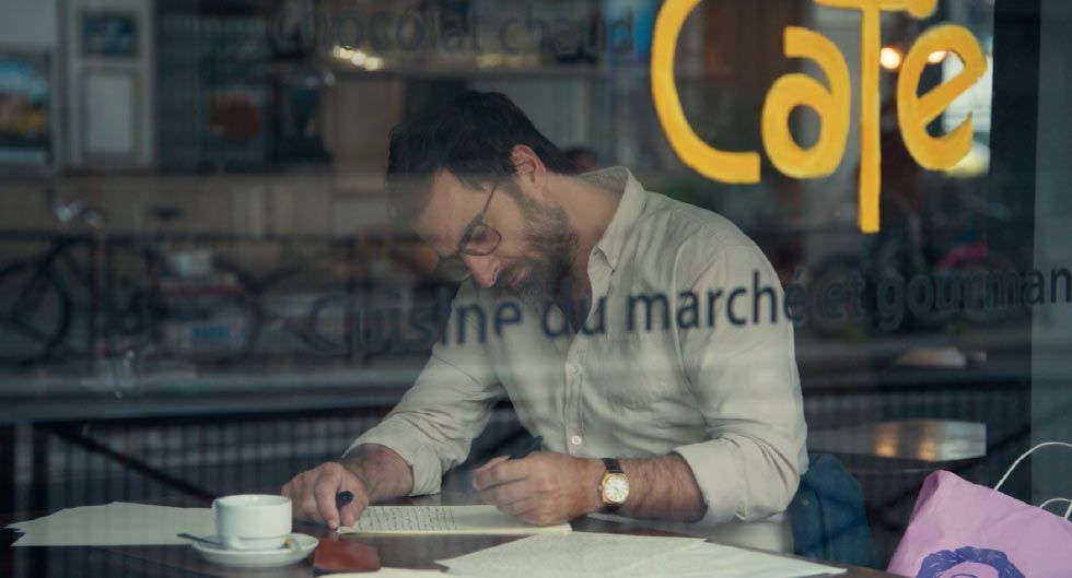 Con una pequeña bolsa en la mano con las cosas que ha recogido de la casa de Léa, acaba en una modesta cafetería cerca del hogar de la mujer y, decidido a mostrarle sus sentimientos, empieza a escribirle una extensa carta de amor, posponiendo todo lo que tenía que hacer ese día.