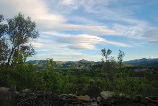 Entrada a la casa rural Bestregui. Paisaje desde el jardín de la Casa.