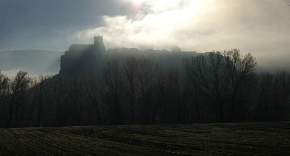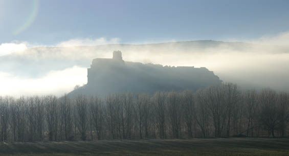 La silueta de su castillo, levantado sobre un peñasco, tiene como fondo el imponente pico Humión, incluido en el Espacio Natural de Montes Obarenes.