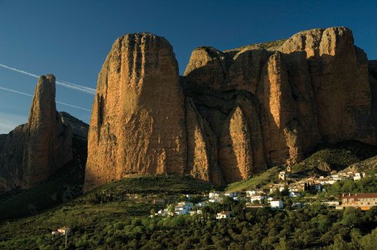Sorprenden especialmente las formaciones geológicas denominadas Mallos, farallones de conglomerado que evocan enormes torreones de vertiginosas paredes verticales, paraíso de escaladores y hábitat frecuentado por numerosas rapaces. Destacan los mallos de Riglos, Agüero y Murillo, en el entorno del río Gállego, y los del Salto de Roldán y Vadiello, en el Parque Natural de Guara.