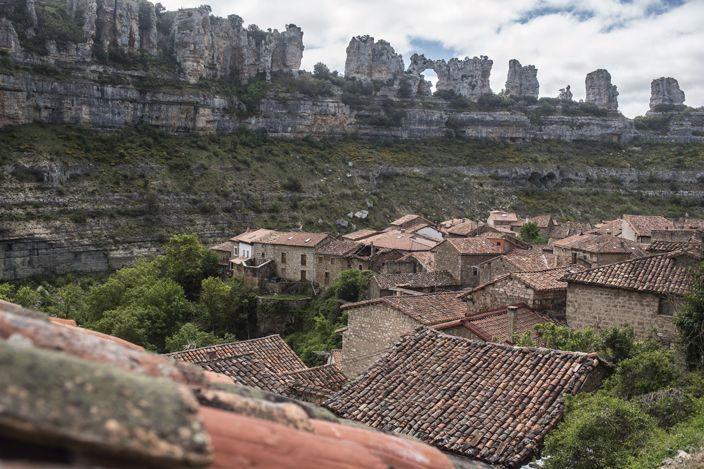 La zona norte de la provincia de Burgos se presenta como un anfiteatro montañoso que, desde antaño, era considerado como vía natural de comunicación entre las tierras del centro y del norte de la Península. A lo largo de todo el territorio burgalés el viajero descubre numerosas cascadas espectaculares para la vista. Es el caso del salto de Orbaneja del Castillo, ubicado en el pueblo que lleva el mismo nombre, que se encuentra enclavado en el espectacular e imponente ‘Cañón del Ebro’. El río que se desprende de esta cascada nace en la ‘Cueva del Agua’, atraviesa la población y, antes de desembocar en el Ebro, se despeña en una pequeña pero inaccesible cascada que deja al descubierto una foto inolvidable. La mejor época para visitarla es durante el deshielo.