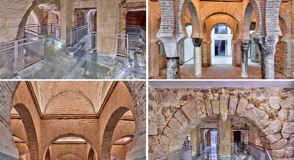Bóvedas de ladrillo cubren estos espacios, culminando en el centro con una cúpula remarcable, sostenida por dobles arcos que se cruzan sin tocarse. Este recurso arquitectónico, junto con los arcos de herradura y columnas bajas, refleja la maestría del arte islámico peninsular.