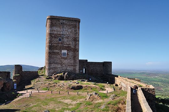 Situado en una alta colina de la localidad, desde lejos parece un faro oteando el vasto horizonte que se extiende a sus pies. En el interior del castillo se encuentra el Centro de Interpretación del Señorío de Feria, museo dedicado a la familia Suárez de Figueroa, una de las más poderosas de la época de la Reconquista en Extremadura, cuya huella impregna múltiples rincones de las comarcas pacenses de Zafra-Río Bodión y Tierra de Barros.