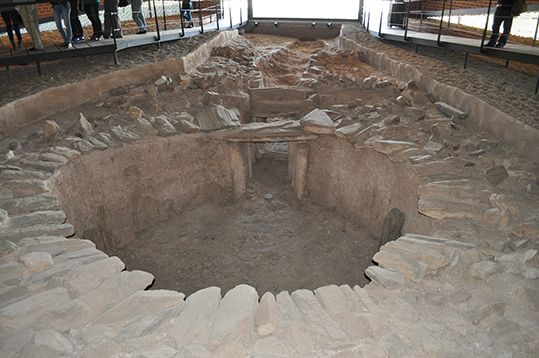 La localidad de Almendralejo atesora uno de los yacimientos arqueológicos más atractivos y sorprendentes de Extremadura. Se trata de un sepulcro prehistórico, de hace más de 4.000 años, compuesto por una cámara cubierta con falsa cúpula y un corredor de acceso a la misma con una longitud total de 15 metros. El hallazgo lo hizo un agricultor en 1988, mientras labraba las tierras. Lo que más me sorprende de este enterramiento, además de las dimensiones, es el su fuerte carácter simbólico. Está construido orientado hacia el Este, y los días 21 y 22 de diciembre, coincidiendo con el solsticio de invierno, los rayos del sol penetran hasta el interior de la cámara funeraria. Fuera de esas fechas, los visitantes que hacen la visita guiada al yacimiento, pueden ver recreado ese efecto solar.