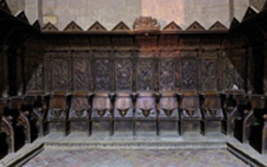 Iglesia de San Esteban: La construcción de esta iglesia románica comienza en el siglo XI gracias a lasa donaciones de la reina viuda Estefanía de Navarra. La cripta de Santa María del Perdón (iglesia inferior) conserva pinturas murales del siglo XIV. En la portada de acceso a San Esteban podemos ver estatuas columnas a ambos lados : San Juan Evangelista, el Rey David, la Reina Estefanía…En el interior de la iglesiasuperiordestaca la pila bautismal donde fue bautizado Fernando el Católico