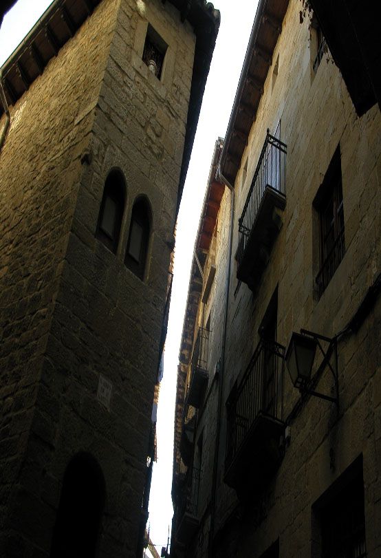En la Plaza del Ayuntamiento se realizó el mercado durante la Edad Media., en el soportal. Podemos ver en el lugar donde se unen los dos arcos un hueco para colocar la balanza y una hendidura vertical que corresponde a la medida de la Vara Jaquesa (772 mm) . En ese lugar se colocaría el Almutazaf, juez del mercado.
