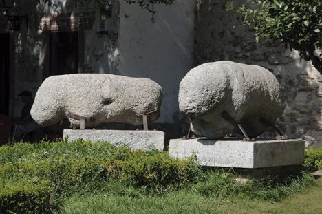 Los verracos prerromanos que se pueden admirar extramuros junto a la Puerta de la Villa, son figuras zoomorfas labradas en granito, cuya tipología arcaica es muy común en la cultura vetona, aunque el origen de estas es desconocido. Próxima a estos, y emplazada actualmente en el centro de la rotonda, la Cruz del hidalgo Antonio de Setién, gran benefactor de la Villa en los años finales del siglo XVI y principios del XVII.