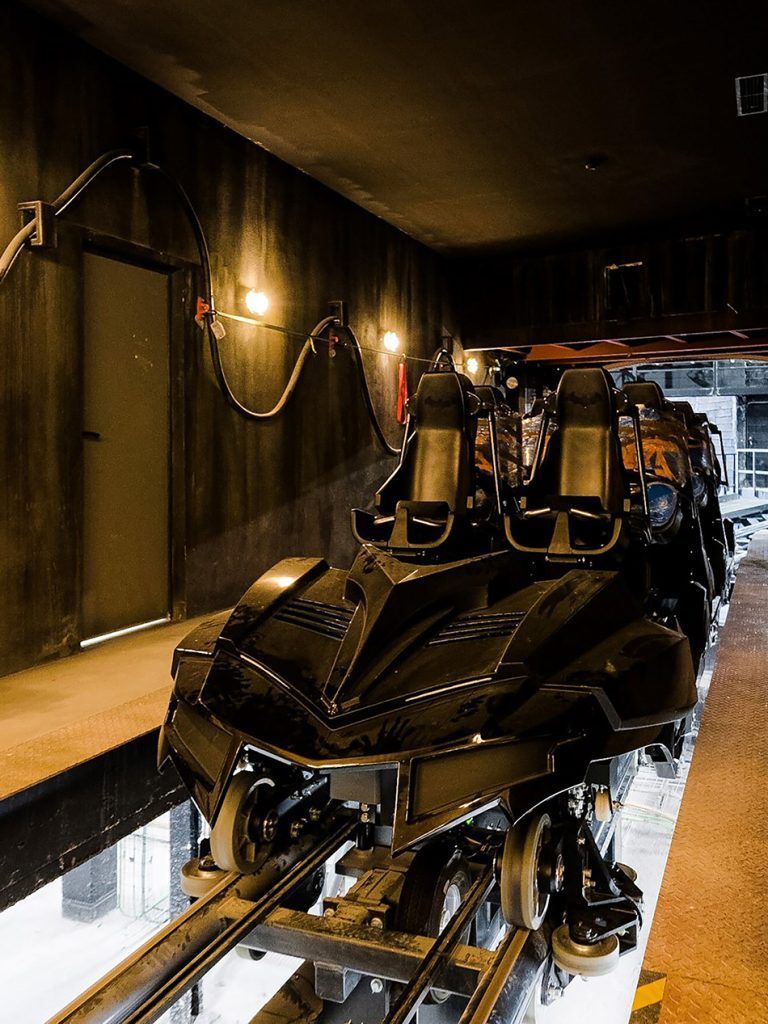 Otro de sus aspectos más diferenciadores es el recorrido a pie que se tiene que realizar hasta llegar a los vagones, inspirados en el Batmóvil. Los visitantes se sumergen en una experiencia inversiva en la que Bruce Wayne abre las puertas de su mansión hasta que, al llegar a la biblioteca, una señal desconocida interrumpe la visita: es el Joker, que ha tomado como rehenes a todos los visitantes y cuenta con el apoyo de los supervillanos de Gotham City como Harley Quinn o Hiedra Venenosa.