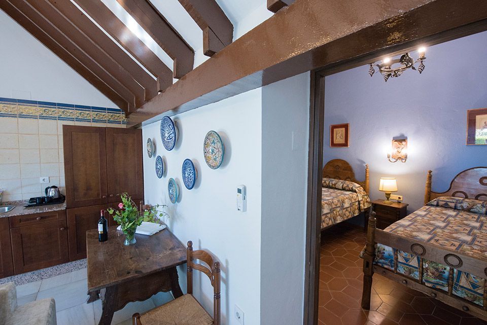 La Casa, La Torre, Nido Moscatel, la Morada, Rincón Bananas, la Cuadra, Mesón Bandolero, el Cortijo, Balcón Atlántida, Rincón Florido, Balcón del Mar, Lontananza, Botica, Mesón del Pino, Morada del Olivo, Mesón Eucalipto, Bambú… Cada una de las veinte estancias que alberga el Cortijo Fontanilla son distintas, con nombre propio y señas de identidad que remiten a su pasado… pero con un denominador común: el calor de hogar. Ese que hace que sus ocupantes se sientan como en su propia casa. Decoradas algunas con muebles antiguos –que les dan ese aire rústico tan acorde con el entorno– y otras con mobiliario más moderno, ofrecen diversas tipologías. Pero todas disponen de salón-comedor con chimenea, uno o dos dormitorios, baño completo y terraza con vistas a los jardines.