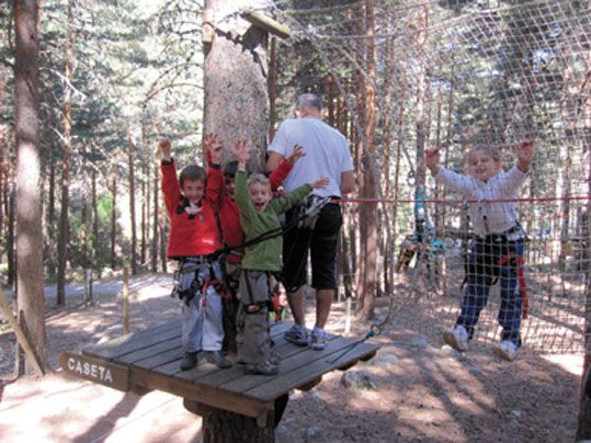 El parque de aventura en los árboles es una actividad para adultos y niños. Los niños tienen que ir acompañados por un adulto (desde el suelo para los niños de 4 a 8 años y realizando el circuito con ellos de 9 a 15 años – ambos inclusive). Cada aventurero es responsable de su propia seguridad, es decir avanza en los recorridos auto asegurándose. Los monitores permanecen en el suelo, vigilando que todos los aventureros cumplen con las normas de seguridad.