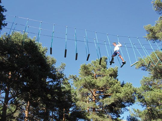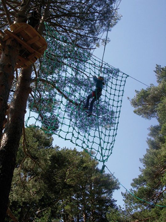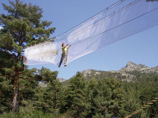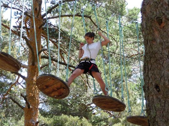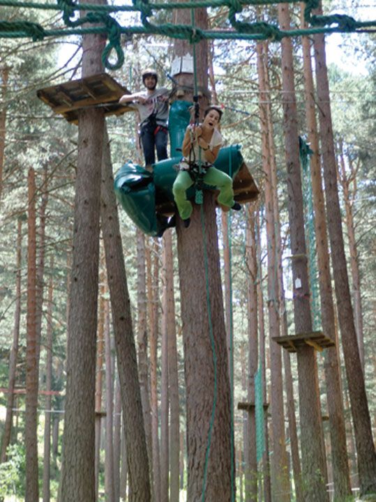 Juegos como pasarelas, redes, tirolinas, puentes tibetanos, vigas, saltos de Tarzán,… permiten pasar de plataforma a plataforma situadas en las alturas de los pinos. Estos juegos constituyen varios recorridos en los árboles que proponen diferentes aventuras, donde disfrutaran poniendo a prueba tu agilidad y equilibrio en total seguridad.