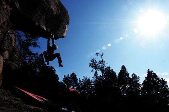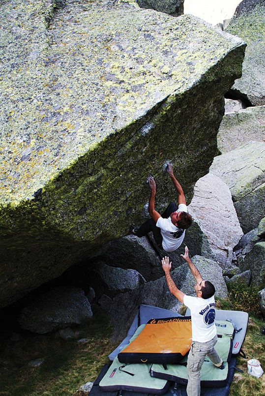La modalidad de bulder  o “escalada de bloque” requiere todavía de menos material. Con unos pies de gato y un crash pad, colchoneta que amortigua la caída, podemos empezar a practicar esta actividad. En esta disciplina las caídas no implican un riesgo grave y la cuerda no está permitida.