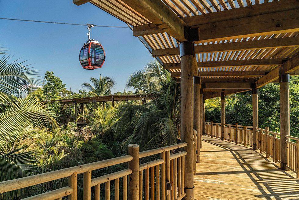 El teleférico, ubicado a 48 metros de altura, ya es una experiencia en sí mismo. Y es que sus paneles de cristal, tanto en el suelo como en los laterales, ofrecen una gran panorámica de los frondosos bosques y de las paradisíacas playas de Riviera Nayarit, mientras que los que viajan en él podrán tener la sensación de estar inmersos en un mar de nubes.
