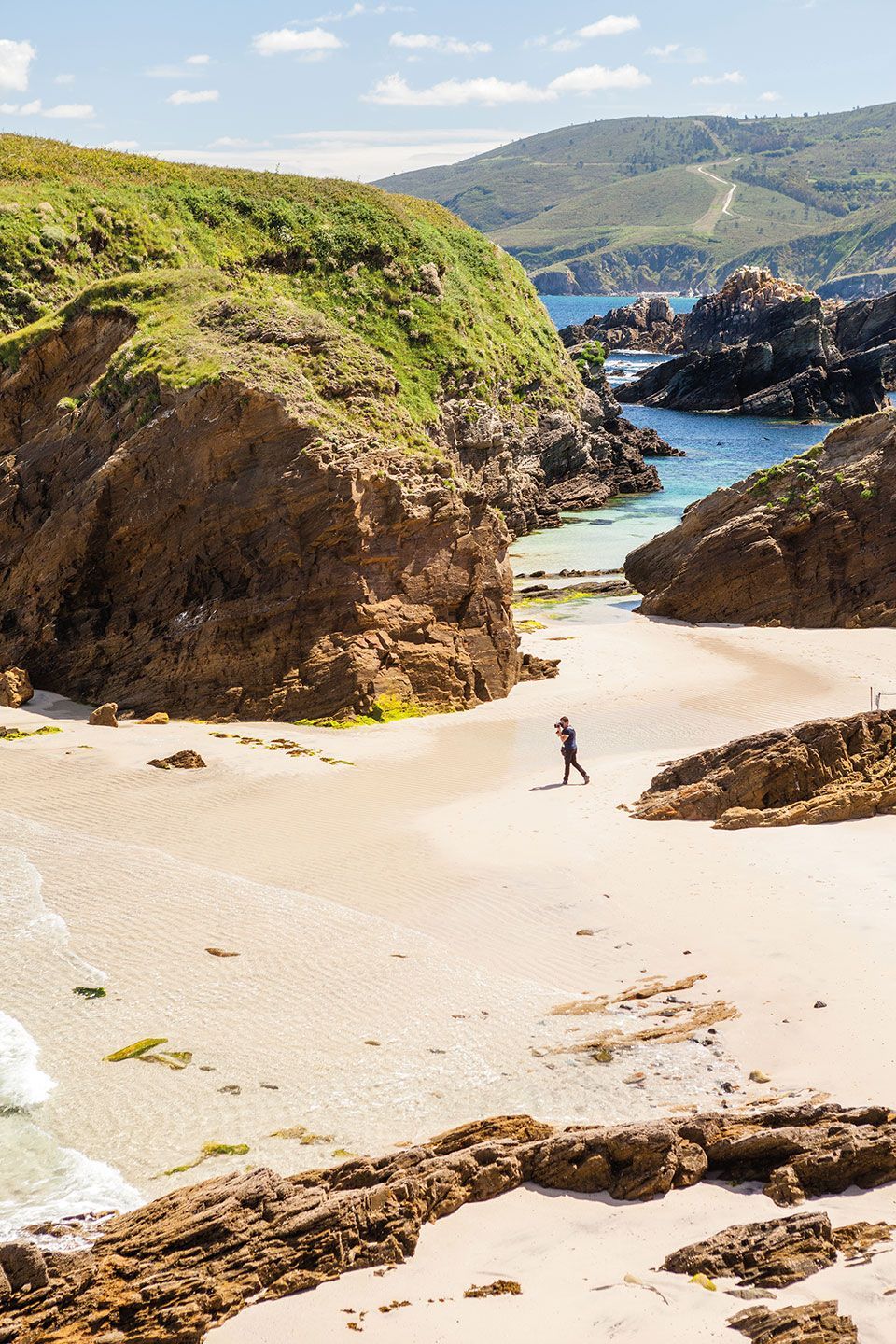•Playa de Campelo: Con forma de concha, la playa de arena blanca y piedras está cerrada entre acantilados con un canal de entrada que entra por la parte derecha de las rocas. Se trata de una zona con potentes picos y olas de derecha a izquierda.
