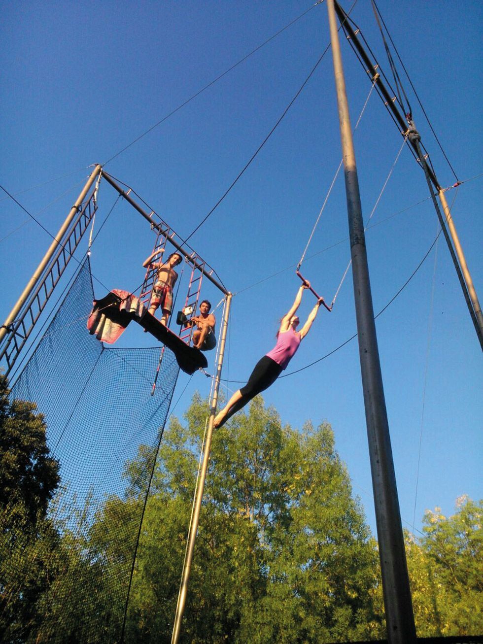 Los alumnos se convierten en regulares de esta disciplina asistiendo 1-2 veces a la semana, cuando van avanzando en su formación y aprendiendo figuras cada vez más complejas, llevándolas a manos del portor que se encuentra en el trapecio de enfrente dispuesto a “cacharle” (cogerle).