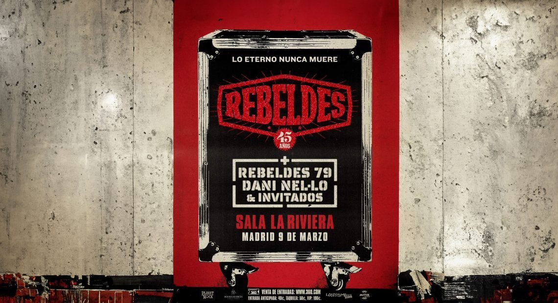 El sábado 9 de marzo de 2024 en La Riviera de Madrid tendrá lugar el concierto 45 aniversario de Los Rebeldes. Un momento único que reunirá a Carlos Segarra, Aurelio Morata y Moisés Sorolla, el trío seminal del grupo, junto a los actuales músicos de la banda y el histórico Dani Nel.lo. Al escenario se unirán amigos de la banda como Loquillo, Miguel Ríos, Ariel Rot y Ovidi (Los Zigarros).