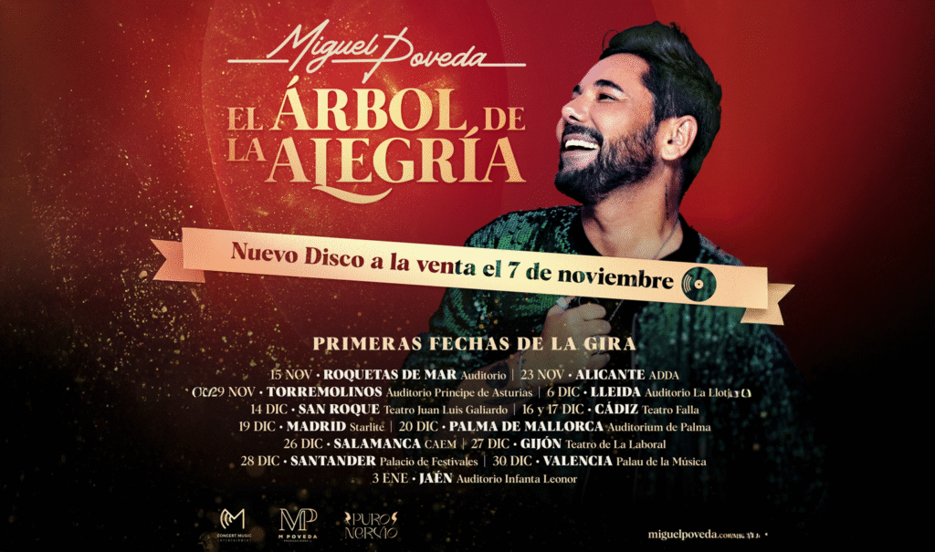 Miguel Poveda presenta El Árbol de La Alegría, su nuevo álbum de estudio, que verá la luz este 7 de noviembre y que llevará a los escenarios en un tour homónimo.