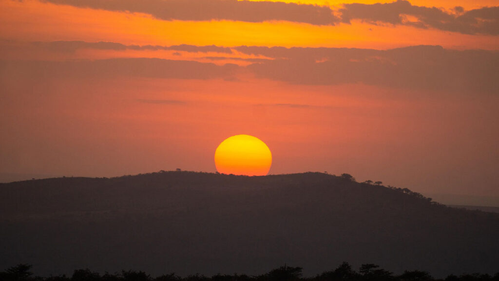 Y es que la silueta de elefantes, jirafas y leones se dibuja junto con el cielo anaranjado, creando una escena que podría recordarnos a una bonita postal. Para una experiencia inolvidable, se recomienda un safari al atardecer durante la migración anual, entre junio y octubre.
