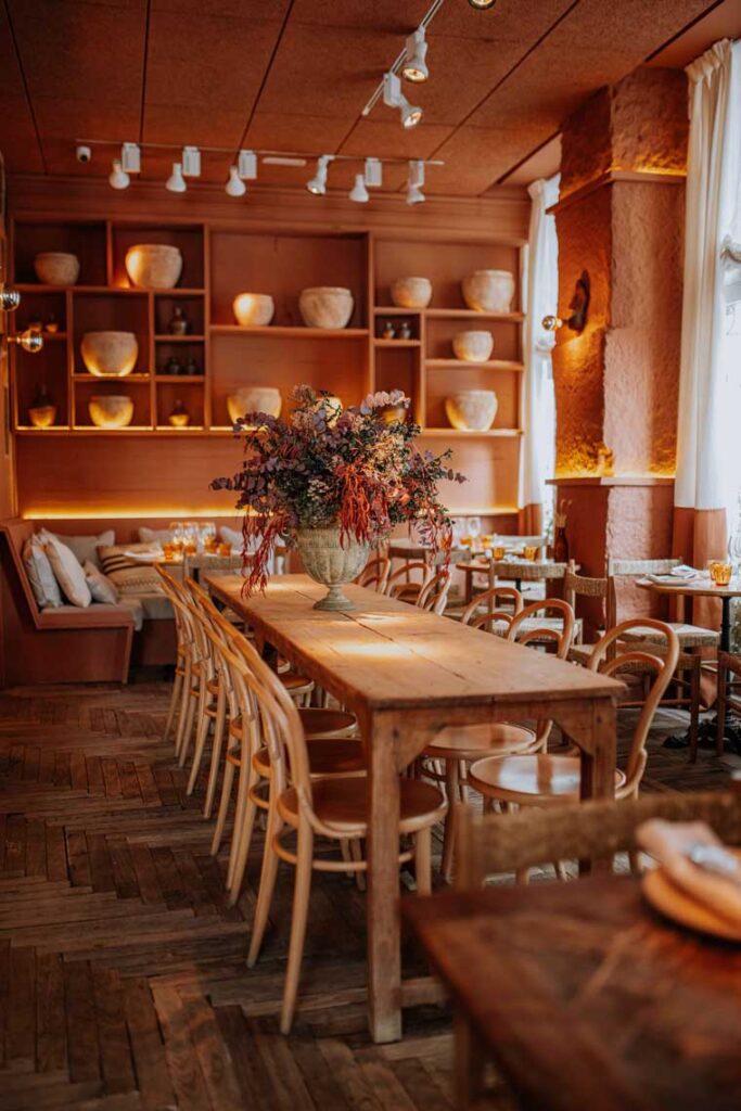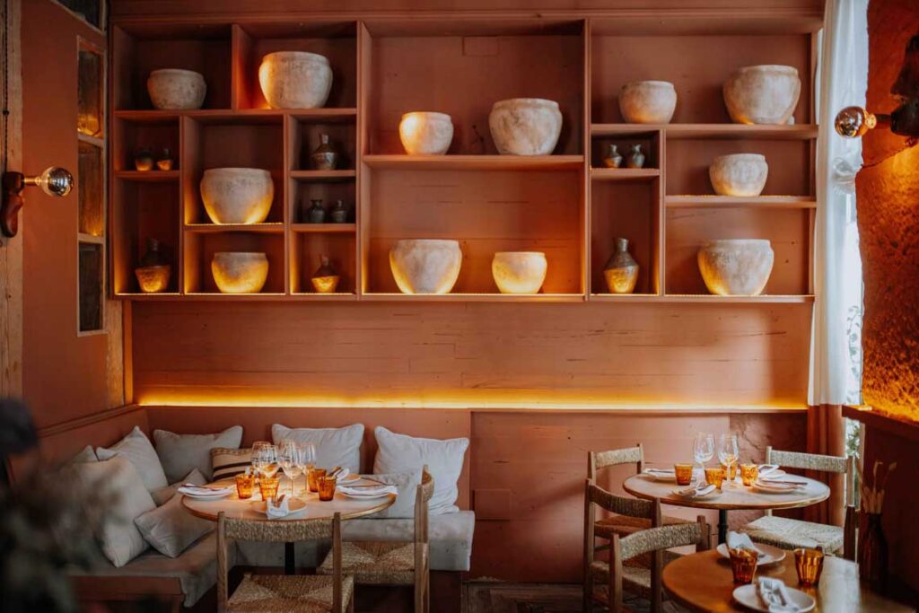 El concepto decorativo del restaurante es sencillo y orgánico, inspirado en la tierra y en la infancia de Ahmad en Líbano. Colores terracota y jarrones de barro predominan en un espacio que busca transmitir calidez y autenticidad para invitar a los comensales a disfrutar de una atmósfera relajada y desenfadada.