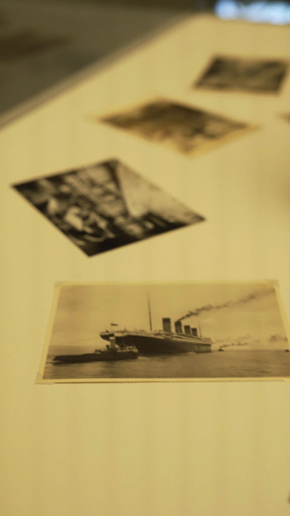 Tras este recibimiento, pasamos por los blancos pasillos de los camarotes de tercera clase hasta llegar a la cuidada sala expositiva, dedicada a los españoles que viajaron en el Titanic, dándonos contexto y adentrándonos en la historia de estos pasajeros.
