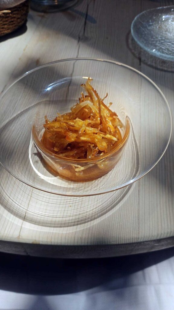 En nuestra experiencia gastronómica, la tortilla de patata en tempura fue uno de esos bocados que te hacen replantearte un clásico. Con una textura ligera por fuera y jugosa por dentro, demuestra que la innovación puede ir de la mano del respeto por el plato original.