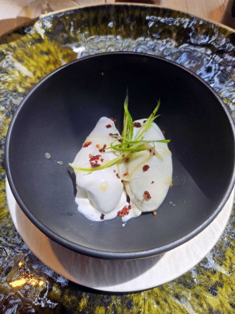 Esta filosofía de cocina de producto culmina de una forma sorprendente en el postre. El helado de espárrago blanco es un final atrevido que descoloca al comensal, pero que a la vez resulta refrescante y memorable.