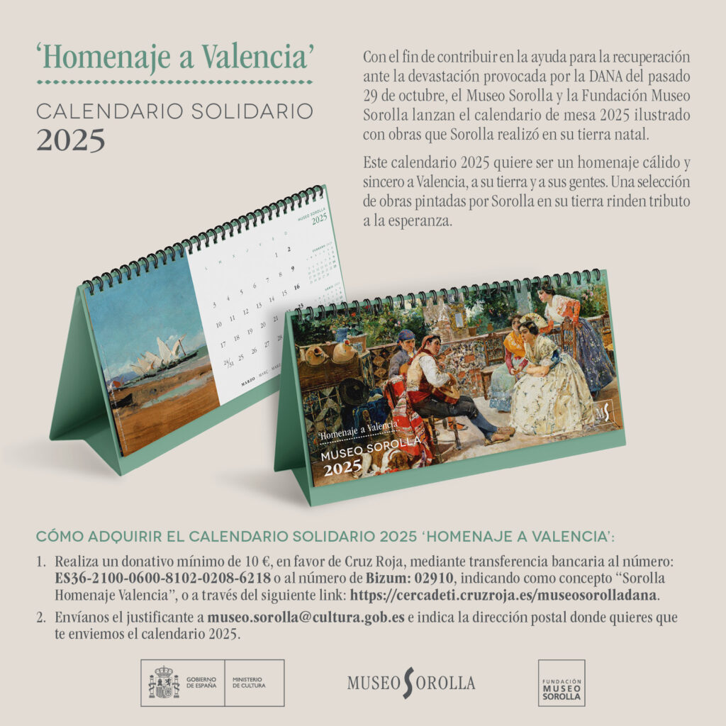 Con esta iniciativa, el Museo Sorolla y la Fundación Museo Sorolla no solo muestran su apoyo a las personas afectadas por esta tragedia, sino que también acercan al público el arte del célebre pintor valenciano, del cual se conmemora el centenario de su fallecimiento.