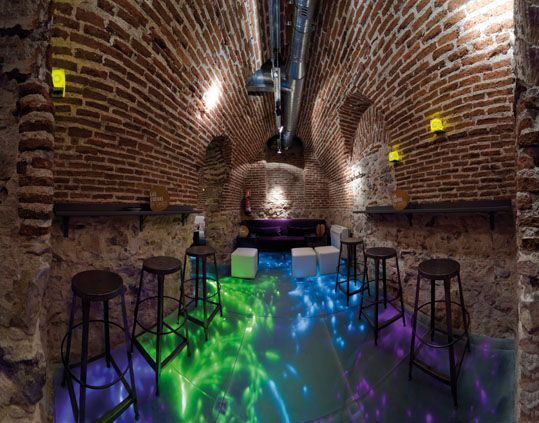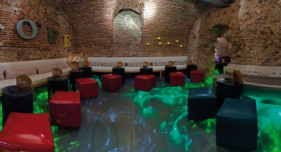 La moderna decoración y la perfecta armonía de luces también juegan un importante papel en Las Cuevas de Sandó, creando así un ambiente idóneo para pasar las tardes y noches de la capital. Las Cuevas de Sandó tiene un fuerte compromiso contigo, para que después de una dura jornada laboral consigas evadirte de todo en este asombroso lugar disfrutando de la primera copa de la noche. Además su oferta se complementa con divertidas propuestas como cursos de coctelería o noches de música en vivo.