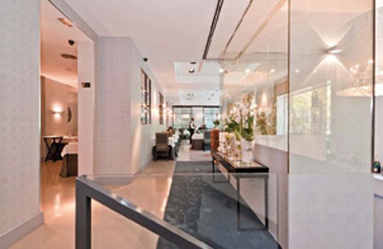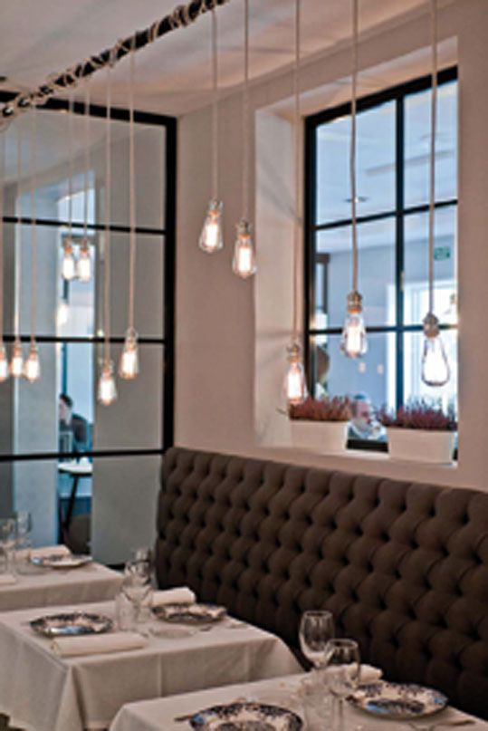 En un espacio de 600 m2, estructurado en dos plantas de ambientes diferenciados obra de la arquitecta Pitu Iglesias de FI Arquitectura, Tweed hace honor a su nombre, sinónimo de versatilidad, elegancia y modernidad. La decoradora de interiores María Basagoiti lo ha conseguido combinando con acertado estilo mesas vestidas con mantel largo y grandes cortinas confeccionadas en tweed, paredes vestidas de papel pintado que recrean este tejido, clásicas vajillas de porcelana inspiradas en las de la Real Fábrica del Buen Retiro, flores silvestres, vanguardistas bancadas y sillas de diseño ad hoc. Todo ello se conjuga a la perfección con una animada y cuidada selección musical, grandes ventanales con vistas a la Castellana y un personal joven y discreto vestido de Scalpers’s, firma que ha revivido los clásicos de moda. Además, cuenta con tres reservados con un punto clandestino que ofrecen una atmósfera más íntima. Elementos bien entrelazados que consiguen una puesta en escena cosmopolita y diferente apta tanto para el público business como para aquellos que buscan un ambiente fresco, joven y animado o para los que quieren darse un homenaje en familia o en pareja.