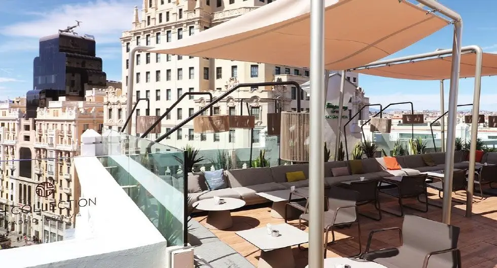 Situado en la 8ª planta del Hotel NH Collection Madrid Gran Vía, este restaurante ofrece unas vistas espectaculares de la Gran Vía madrileña. Con su azotea 360 grados y una carta variada, es ideal para disfrutar tanto de día como de noche.