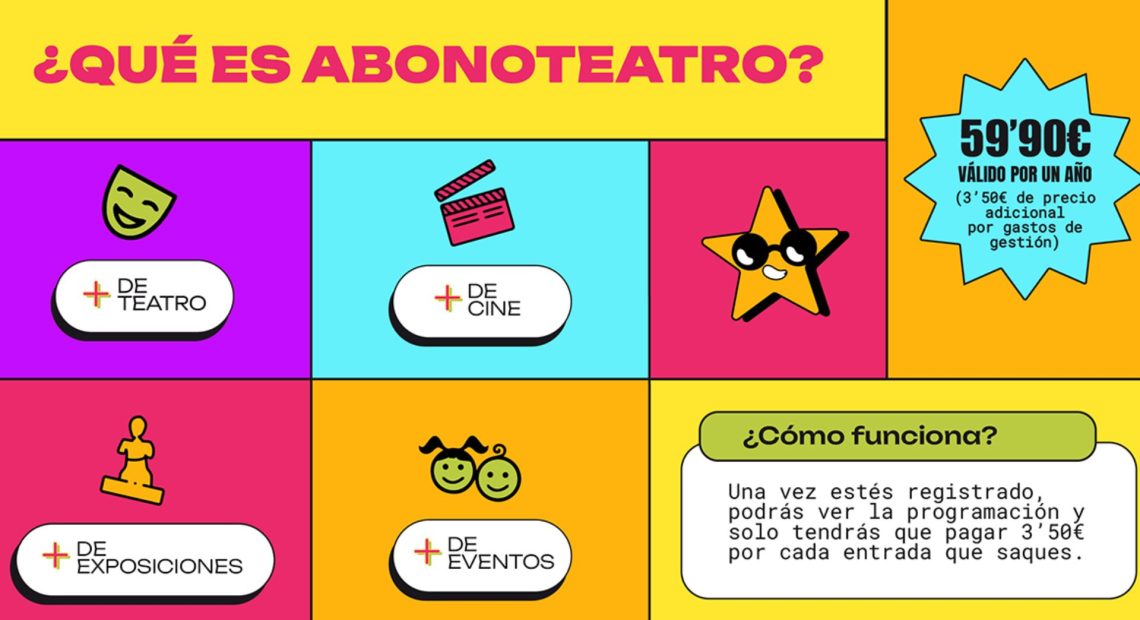Con el abonoteatro, se puede acceder a más de 70 espectáculos diferentes, incluyendo teatro, cine, museos, deportes, y conciertos.