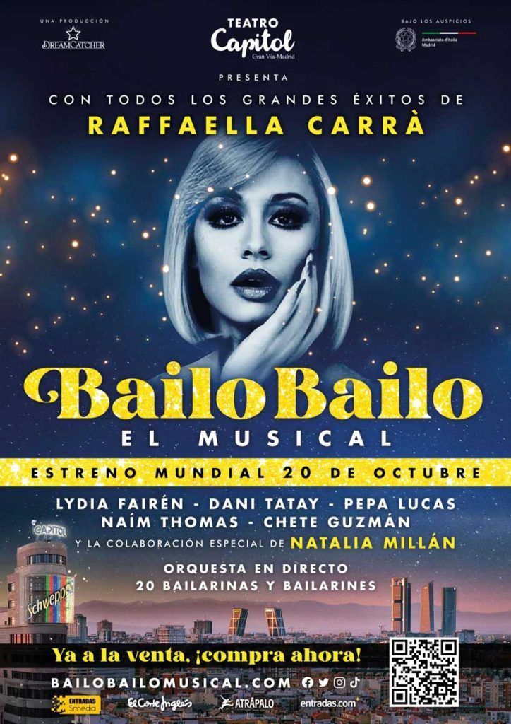 Musical lleno de color y energía. Una verdadera fiesta gracias a las inolvidables canciones de Rafella Carrá. Con unas coreografías y bailarines espectaculares que te sacaran de la butaca y como colofón una espléndida Natalia Millán.