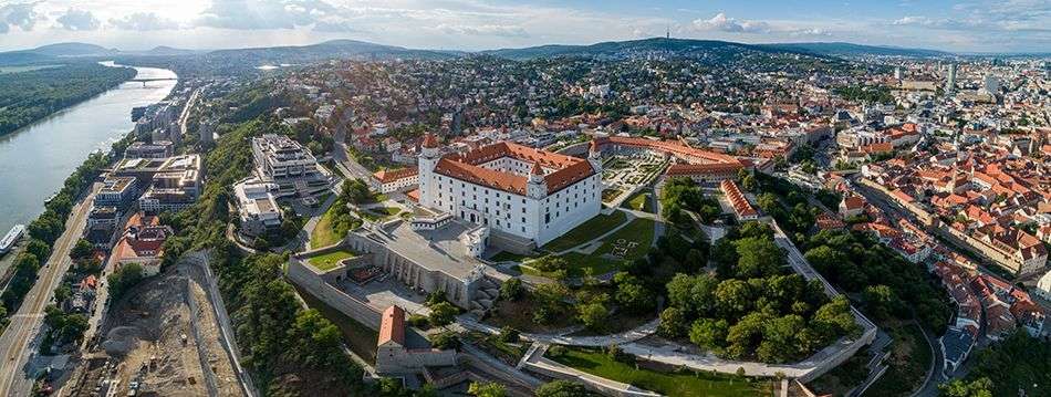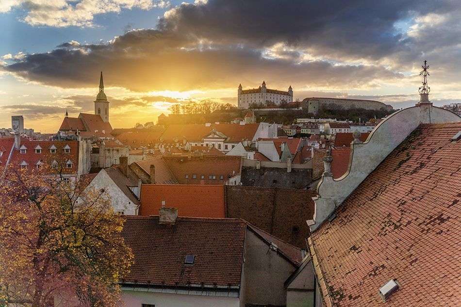 Bratislava, capital de Eslovaquia es una de las más pequeñas del continente europeo, rodeada de bosques y con un encantador casco antiguo a orillas del Danubio. A tan solo 60 km de Viena, es la opción perfecta para realizar una excursión de día o preferiblemente tomárselo con calma, pernoctar para ver la ciudad iluminada y disfrutar de su ambiente nocturno.
