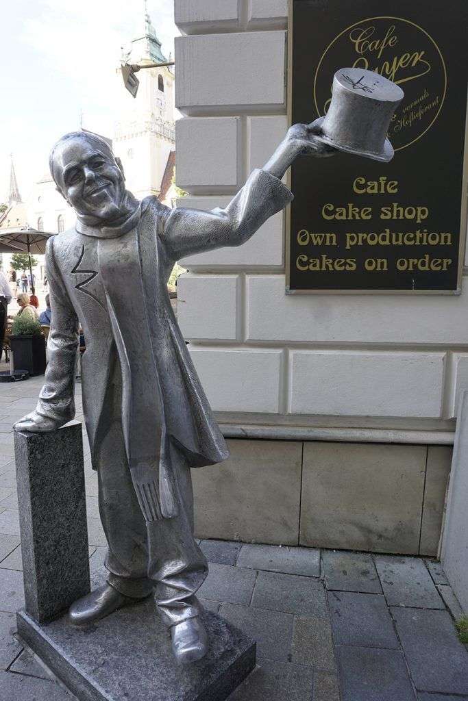 Una curiosa estatua de un soldado del ejército de Napoleón a tamaño natural se halla apoyado en uno de los bancos de la plaza siendo el deleite de muchos visitantes que no dudan en sentarse a fotografiarse acompañados del indiscreto personaje. Se dice que representa a un soldado francés herido llamado Johann Evangelist Hubert, que se enamoró de una enfermera de Bratislava, decidió vivir en la ciudad y comenzó a producir un vino espumoso basado en la tradición francesa. Hubert es ahora el nombre del vino espumoso más famoso de Eslovaquia.