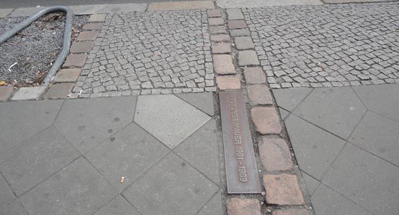 En una gran parte de Berlín te encontraras adoquines marcados que te indicaran con una pequeña placa por donde ha pasado el muro de Berlín. También encontraras, pequeñas placas en puertas de viviendas en homenaje a los desaparecidos, este es un pequeño tributo a la memoria de estas injustas muertes.