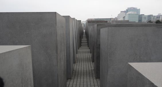 Monumento a los Judíos. Al lado de la puerta de Brandeburgo se sitúa este monumento en memoria de los judíos asesinados. Se trata de una superficie de 19.000 m2 con 2711 losas de hormigón colocadas a diferentes alturas. Es un monumento para vivirlo. Puedes adentrarte entre ellas desde cualquier ángulo, dando lugar a diferentes emociones que nacen entre estos bloques y que a su vez, van ganando altura a medida que se avanza. Se puede visitar en su subterráneo un punto de información sobre víctimas y lugares de los horrores.