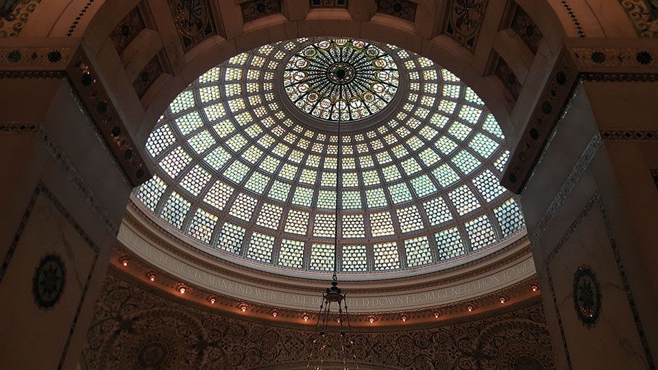 Día 2: El segundo día de nuestra estancia y con un sol radiante, nos lanzamos a conocer los parques a las orillas del lago. Comenzamos la ruta visitando el Chicago Cultural Center. Un bonito edificio neoclásico, que ofrece elementos de interés arquitectónico y fue diseñado como biblioteca de la ciudad. Los salones y galerías presentan columnas dóricas, puertas de caoba, techos ornamentados, escaleras palaciegas, paredes de mármol, mosaicos, vestíbulos abovedados y una valiosa cúpula de vidrieras estilo renacentista. El Preston Bradley Hall, está coronado con una austera cúpula de cristal de 12 m de diámetro de Tiffany diseñada por el artista J. A. Holtzer. El Centro, afirma que es la cúpula de Tiffany más grande del mundo. Una maravilla de edificación en la que además se realizan exposiciones y la entrada es gratuita. No se puede pedir más. Tiene varias entradas por la calle Randolph y Washington.