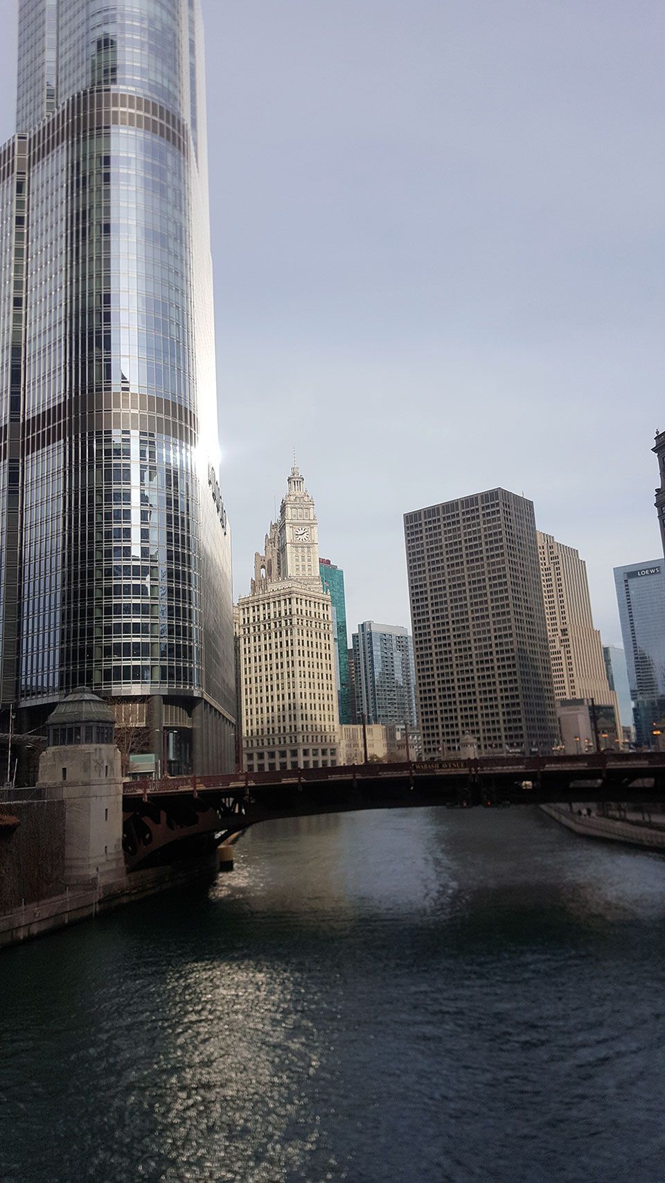 Caminando en pocos minutos llegamos a la ostentosa Trump Tower, el Wrigley Building con la torre inspirada en la Giralda de Sevilla, La Tribune Tower, el pintoresco puente basculante DuSable…. y frente de este último, el Chicago Architecture Center.