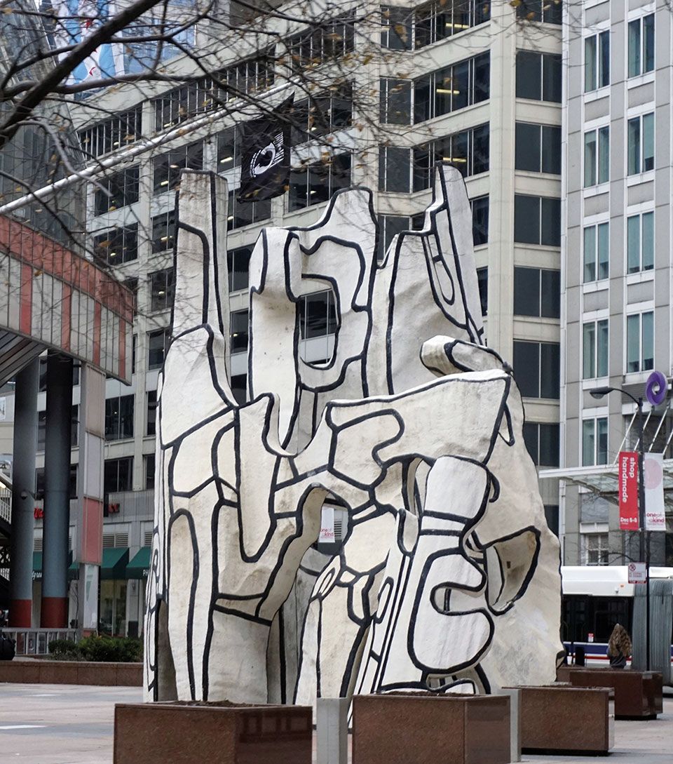 Otra espectacular obra es el Calder’s Flamingo, realizada por el artista estadounidense Alexander Calder, que se halla frente al edificio Federal Kluczynski, la tonalidad anaranjada choca con la oscura y acristalada construcción que se halla detrás. Muy recomendable visitarla al anochecer, cuando apenas no hay luz y el color del flamingo se vuelve casi de neón. Entusiastas de estos auténticos museos al aire libre, en LaSalle Street con Jackson Blvd hallamos la inspiración de Gotham City.