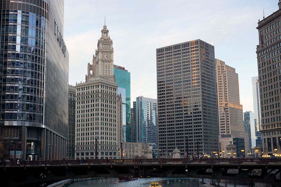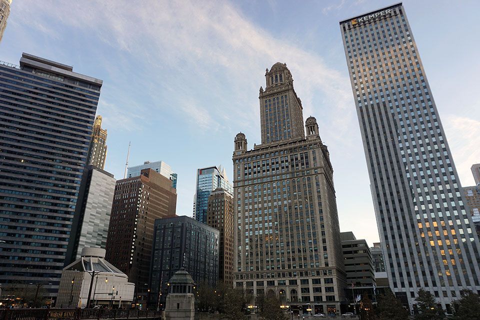 Atendiendo a su pasado y tras colonizar a las tribus nativas de la región, Chicago no empezó a construirse hasta 1833. Con la incipiente industria de la época que atrajo a multitud de inmigrantes, creció desorganizada y sin control. El llamado “Gran Incendio” de 1871, causó gran conmoción y arrasó buena parte de la ciudad, dando la oportunidad de crear una nueva, resurgiendo de sus cenizas. Afamados arquitectos colaboraron en la reconstrucción que dio origen a la conocida Escuela de Chicago, introduciendo novedades como los edificios de entre 10 y 16 alturas, siendo artífice de los primeros rascacielos. La estética cambió por completo, y marcó tendencia en el diseño urbano estadounidense. Es por ello, que sea conocida por la ciudad de los rascacielos. Estos, de atrayente y actual arquitectura, incorporan un perfil único sobre las aguas del lago Michigan y del río Chicago. La Willis Tower, el primer rascacielos, fue el más alto y famoso en su momento, pero hay cerca de 1.100 edificios de gran altura.