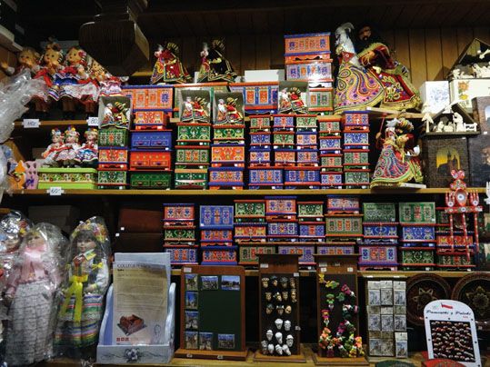 Fábrica de Schindler. Fotos platos y bebidas típicas. Figuras de sal