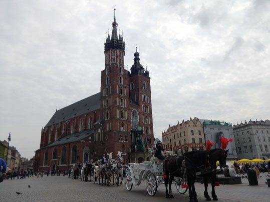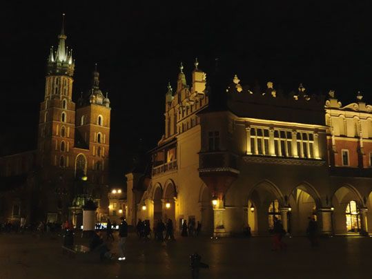 En esta Plaza destacan dos grandes construcciones: La Lonja de Paños o (Sukiennice) y la Basílica de Santa María.