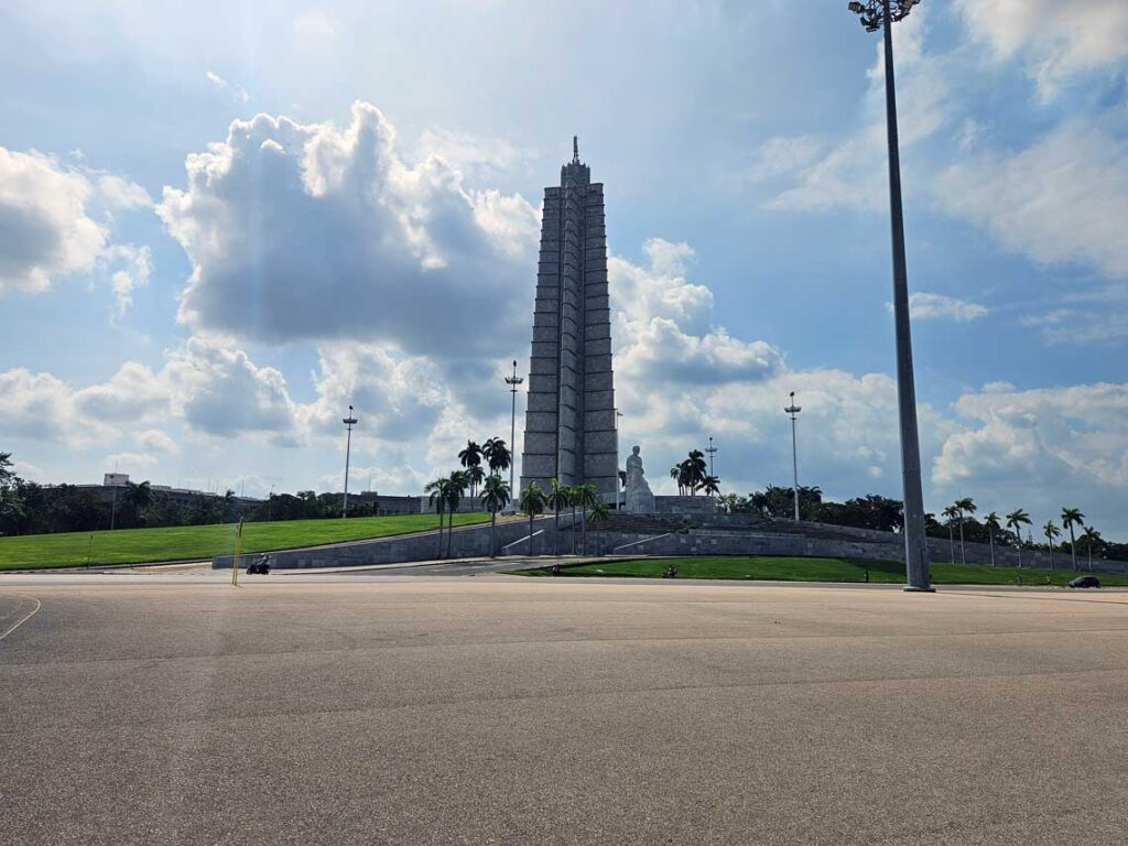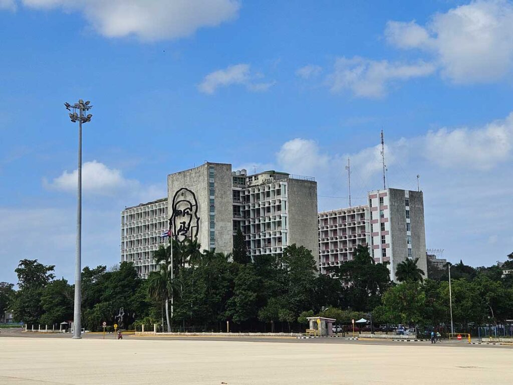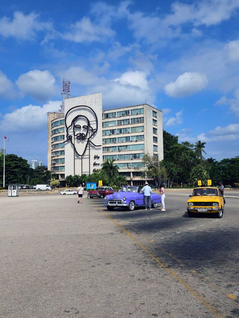 La siguiente parada fue en la Plaza de la Revolución, uno de los lugares más emblemáticos de la historia reciente de Cuba. Con sus 72.000 metros cuadrados, ha sido escenario de discursos históricos, especialmente de Fidel Castro. Preside el espacio el monumento a José Martí, de 109 metros de altura, desde cuyo mirador se obtiene una vista panorámica de La Habana. Frente a la plaza, destacan las famosas imágenes del Che Guevara y Camilo Cienfuegos en las fachadas de los ministerios, símbolos ineludibles de la identidad política cubana. Una visita imprescindible para entender el presente del país a través de su historia.
