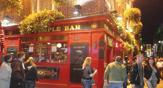 - El Temple Bar es uno de los barrios más antiguos y carismáticos, situado entre Dame Street y el río Liffey y constituye el mayor centro cultural y de ocio de Dublín. Sus calles adoquinadas se encuentran repletas de bares y restaurantes, es aquí donde se centra una gran vida nocturna. Lo habitual es cenar pronto, sobre las 19:00-20:00 horas, y comenzar a tomar pintas en los pubs. En el Oliver St John Gogarty nosotros pasamos un rato muy muy divertido.