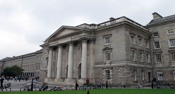 - Trinity College: Es la universidad más antigua de Irlanda fundada en 1592. Un paseo por su enorme campus y bajo el deleite de sus edificios os transportará a aquellos tiempos. No se puede dejar de ver el edificio de la Antigua Biblioteca, el más antiguo de los que se conservan. La sala principal, conocida como “Long Room” tiene 65 metros de largo y contiene más de 200.000 de los libros más antiguos. Las infinitas estanterías repletas de ellos inundan el ambiente con su olor a añeja madera, mientras algunos bustos de mármol enriquecen la sala. En una vitrina se expone el arpa más antigua que se conserva de Irlanda, realizada en roble y sauce con cuerdas de bronce. El Libro de Kells, es la joya de la biblioteca, contiene un texto en latín de los cuatro evangelios escritos con una caligrafía muy ornamentada. Se cree que el Libro de Kells fue creado por los monjes de Iona a principios del siglo IX. Tras el saqueo de Iona a manos de los vikingos, en el año 806 D.C., los monjes que sobrevivieron se trasladaron a Kells. Cientos de años después, por razones de seguridad, el libro fue enviado a Dublín y llegó a manos del Trinity College en 1661.